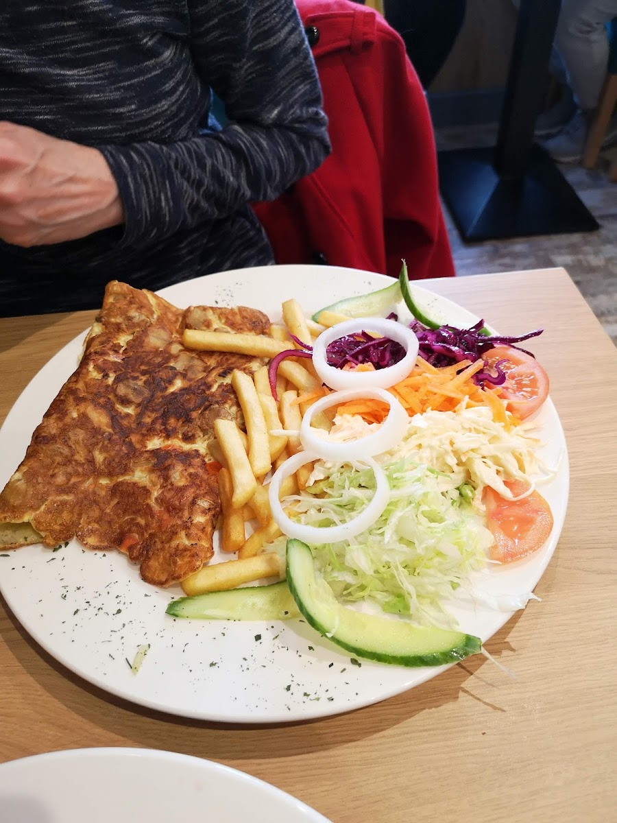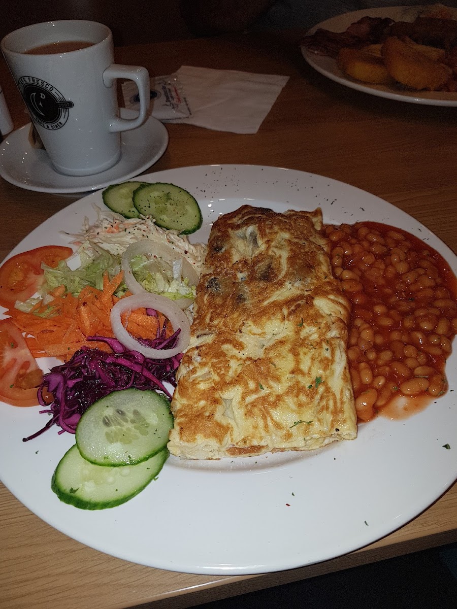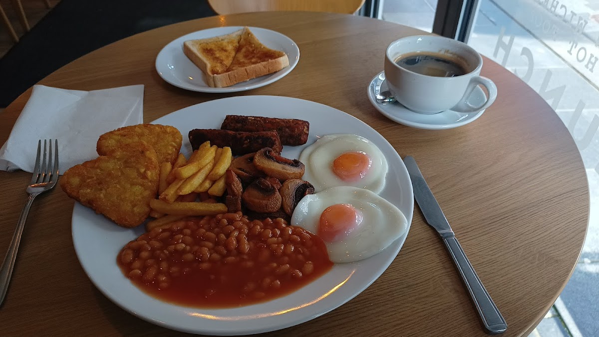 Great staff, really looking after you. Veggie breakfast was great. Breakfast and coffee came to £11.50. Be prepared they only take cash. Plenty of seating.